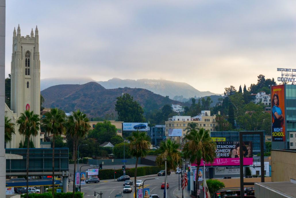 That said, a camera with a decent zoom lens can take a fine photo of the Sign from here – and this is by far the most “Hollywood” of the Hollywood Sign scenes. You’ll see the crowded lanes of Highland Ave, lots of billboards for movies and TV shows, and the Hollywood United Methodist Church. There’s also a machine that will sell you gelato, so not too shabby.
