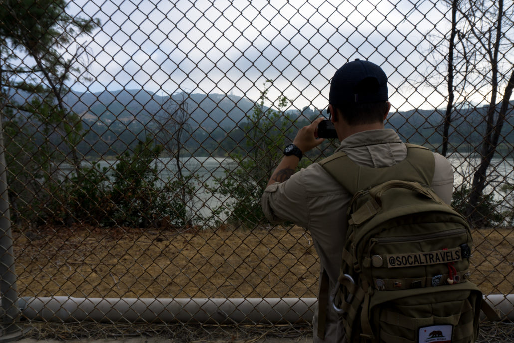 There is no reasonable way for people to reach the Mulholland Dam on transit … and even though this trip could not really be described as “reasonable” in any sense, we didn’t want to start out a full day with a 2 mile walk from Hollywood and Highland to the end of Weidlake Drive. So instead, we took a rideshare and got dropped off on the north end of the Hollywood Reservoir – an area with relatively wide roads and decent parking that’s not near a lot of houses.