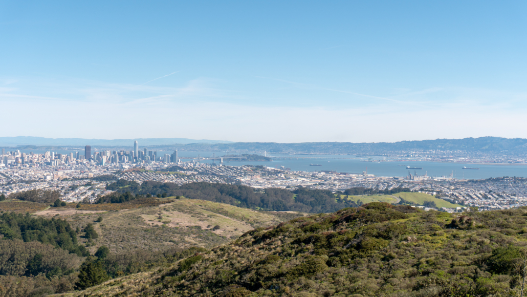 San Bruno Mountain, sandwiched between the Pacific Ocean and San Francisco in northern San Mateo County, is a wonder of views. Vistas highlights on this hike include the northern reaches of the Santa Cruz Mountains and Diablo Range, and regional peaks like Twin Peaks, Mount Diablo, and Mount Tamalpais.