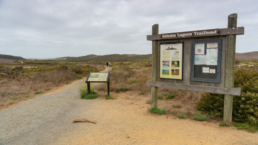 From San Francisco, take Highway 101 North to exit 450B toward San Anselmo. Merge onto Sir Francis Drake Boulevard and drive 20.4 miles west to Olema. Turn right onto Highway 1 in Olema, drive 0.1 mile, then turn left onto Bear Valley Road. Drive 2.2 miles to a stop sign, then bear left onto Sir Francis Drake Boulevard. In 5.6 miles, turn right onto Pierce Point Road. Drive 3.4 miles to the Abbotts Lagoon Trailhead and parking lot on your left.