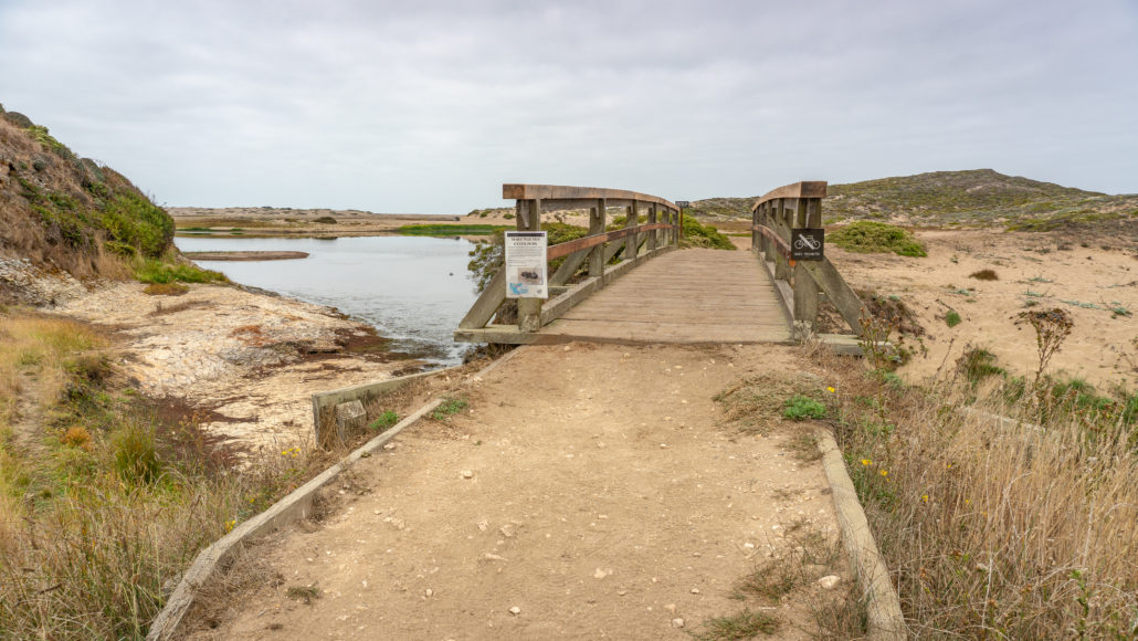 When ready, head back down and cross the footbridge over the lagoon, heading west towards the ocean. Keep an eye out for river otters teaching their young how to hunt, ducks sheltering for the winter, migrating birds chasing after clams, snails, and worms, and western snowy plovers, federally threatened shorebirds, incubating their eggs in the sand.
