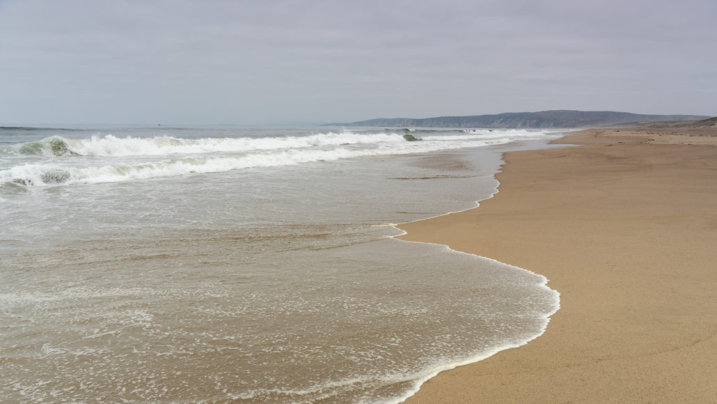 At 1.7 miles, reach the Pacific Ocean and Point Reyes Beach. Crab shells, bullwhip kelp, and the sandy ocean beach merge with the pounding surf. Angular cliffs and rolling dunes extend northward towards Kehoe Beach, with the Point Reyes Headlands curving to the south. Point Reyes Beach is 11 miles long and you can explore for miles in either direction.