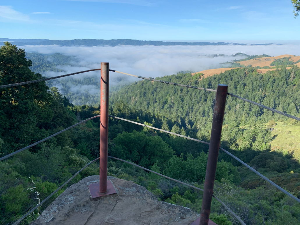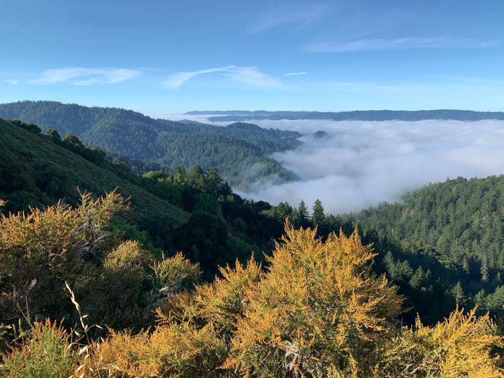 Morning fog settles in valleys on the western slopes of the Santa Cruz Mountains.