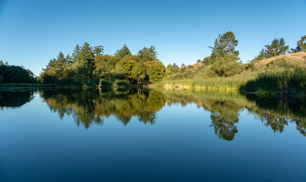 Alpine Pond and Horseshoe Lake are artificial ponds created in the 1950s by John Ricky, owner of the former Rickey’s Hyatt House in Palo Alto, as a water source for his ranching and farming activities. In 1982, Midpen purchased the property and developed Skyline Ridge Open Space Preserve. Today, the ponds are preserved wetlands where you can learn about plants and animals that live in them and feed from them like herons, red-winged black birds, dusky-footed woodrats, brush rabbits, and western pond turtles.