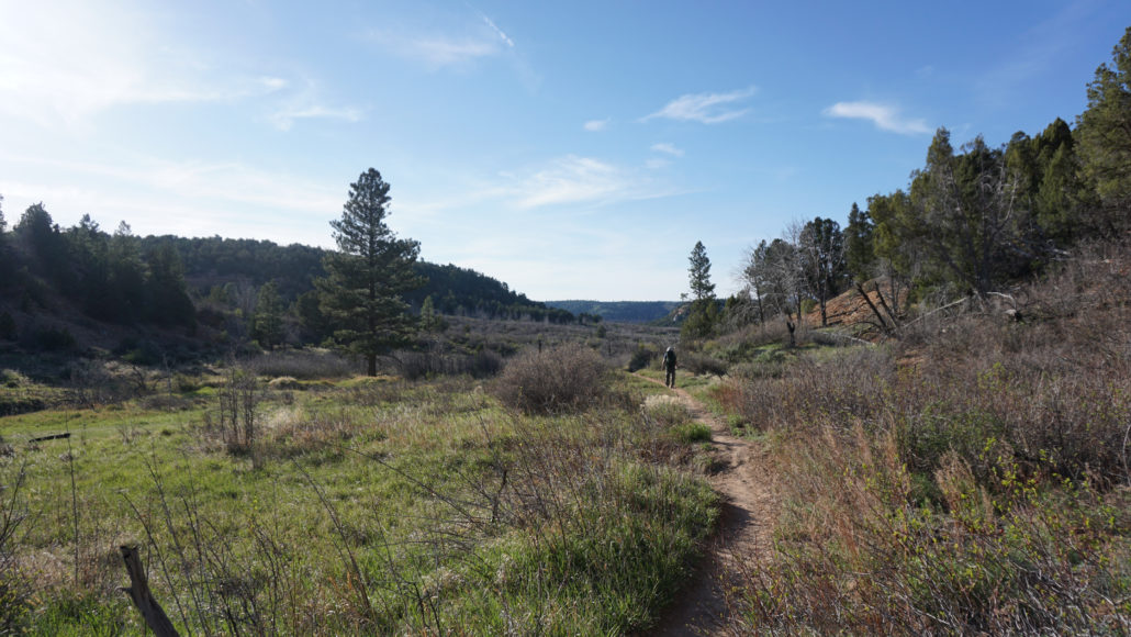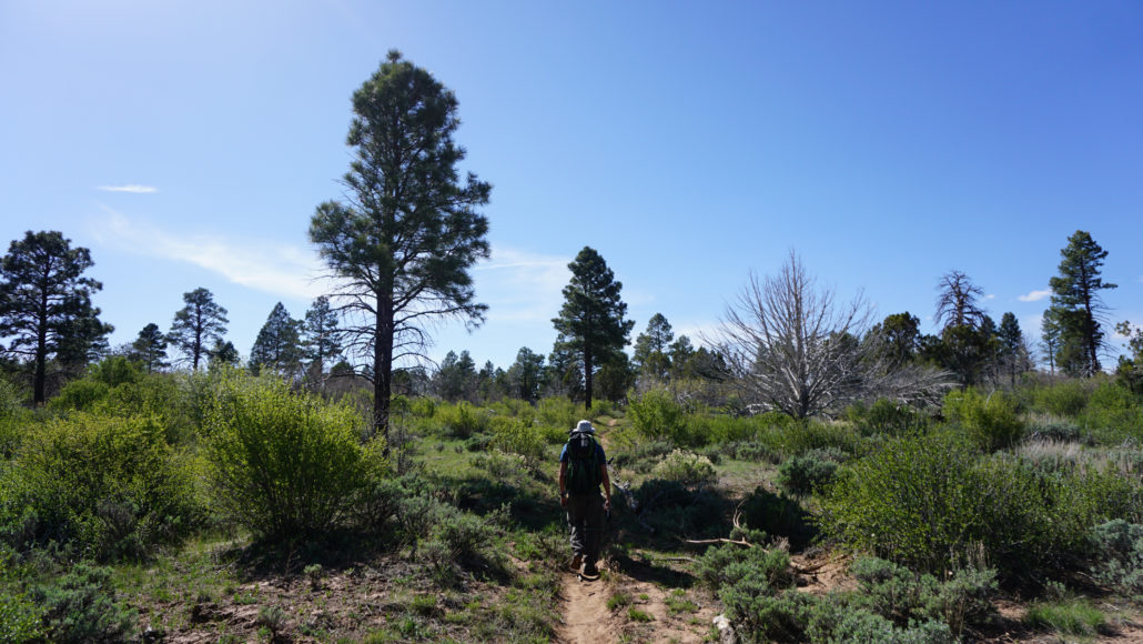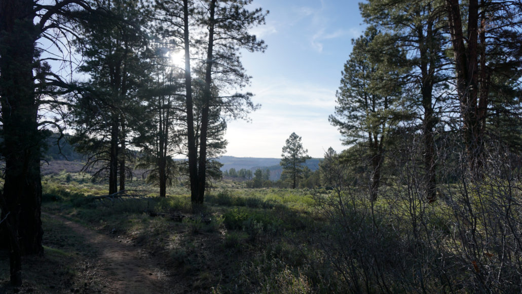 From the Stave Spring Trailhead, head west on a former dirt road that the park has reverted to a single track trail as it hugs the edge of a spacious meadow carpeted in sagebrush and rimmed with ponderosa pine. After 0.5 mile, turn left at a junction with the East Rim Trail, and begin climbing through a broad ravine toward another junction with the combined Cable Mountain/Deertrap Mountain Trails.