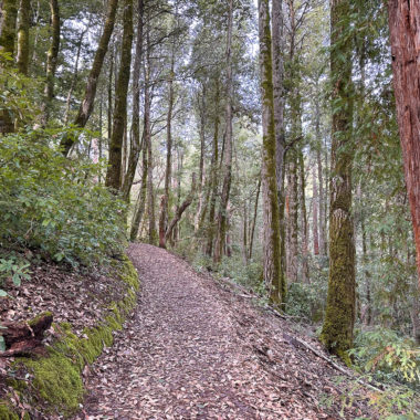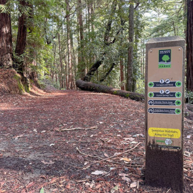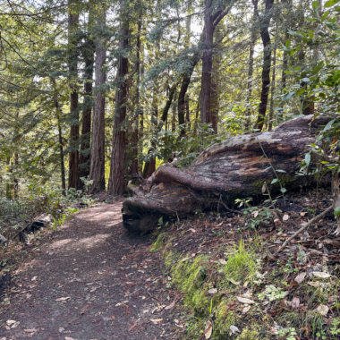 Already you’re hiking among second-growth redwoods, sprouted in place of ancient redwoods logged in the mid-1800s for lumber to build fast-growing San Francisco. Five sawmills ran near the present-day Huddart Park between 1853 and 1860. On the park’s northern perimeter, the Richard’s Road Trail used to be a transportation route for oxen-pulled wagons carrying redwood lumber to Redwood City. Once there, it would travel by barge to San Francisco.