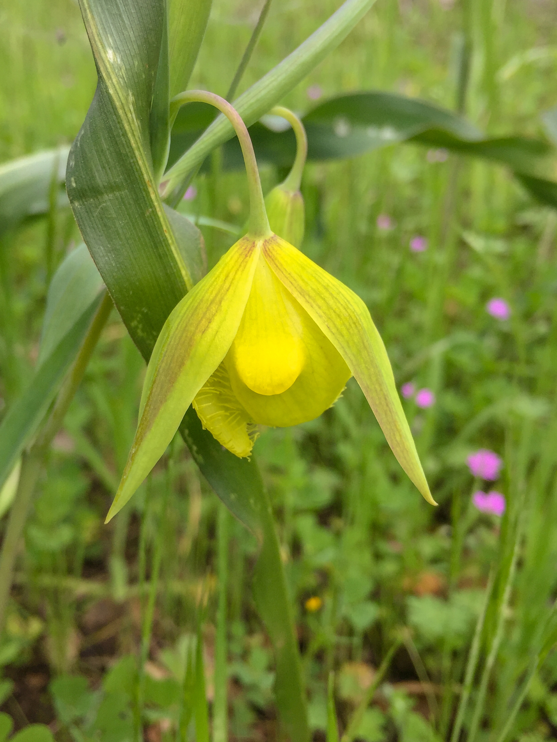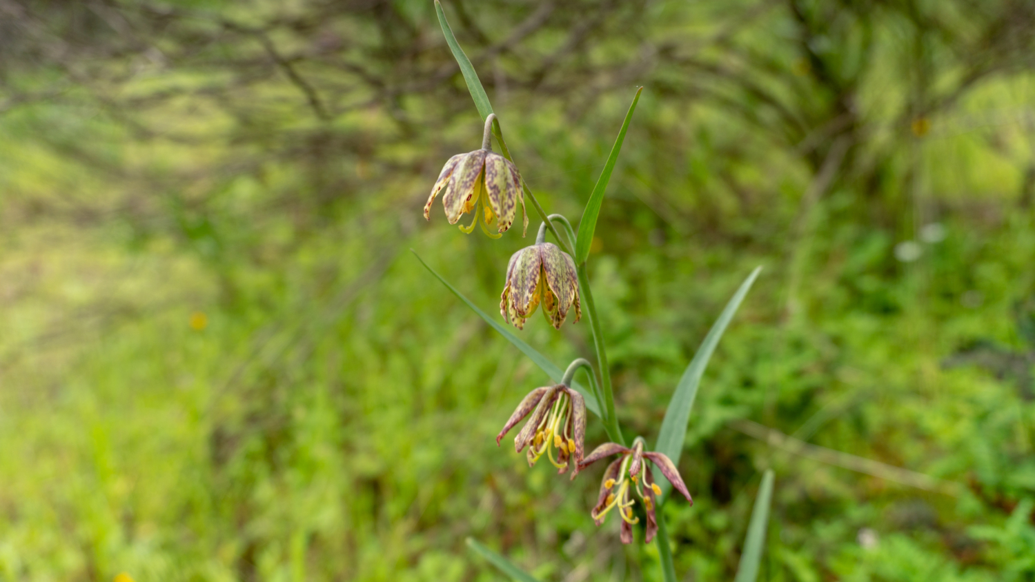 In 0.6 miles, turn right onto the Black Point Trail and in 250 feet, turn left onto the Globe Lily Trail. The 0.5-mile single-track trail parallels Mitchell Canyon Road, with slope-side views of Mitchell Canyon, narrow-leaf golden bush, Indian paintbrush, and California poppy. Keep your eyes peeled for the trail’s namesake flower, the Mount Diablo globe lily, a yellow flower whose petals form a tear-drop shape that’s only found in California. At the end of the Globe Lily Trail, turn left and then make a quick right to rejoin the Mitchell Canyon Road south towards Deer Flat.