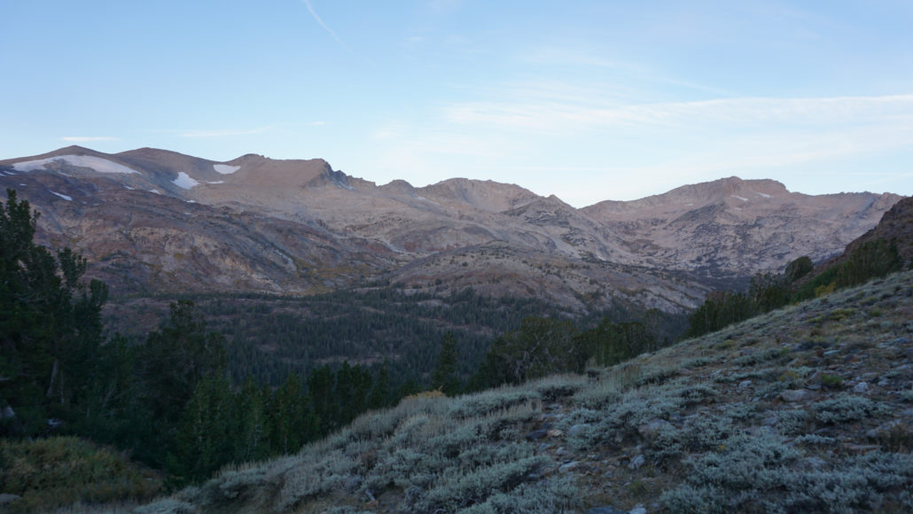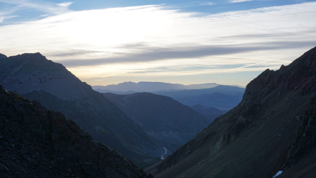 The Sierra Crest with White Mountain on the left and Mt. Conness on the right