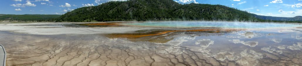 And of course, it’s very famous for a reason. Not only is the spring the largest hot spring in the park, but the temperature gradient from its intensely hot inner blue eye produces a prism of colors as the water cools outwardly, with a variety of bacteria and algae creating new colors with every inch and every degree drop of water temperature.