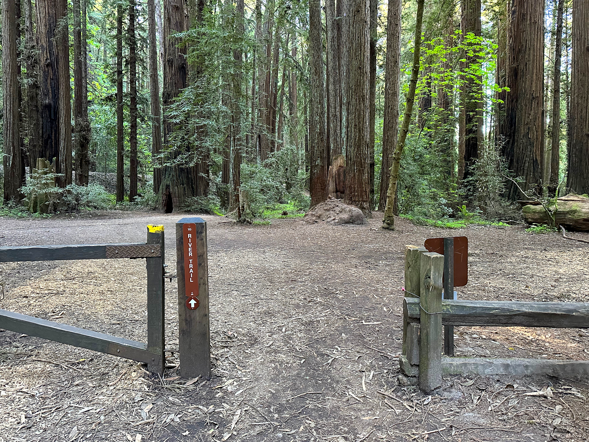 When ready, follow signs for the River Trail, exiting the Redwood Grove Loop just beyond the Frémont Tree. We’ll come back to finish the loop at the end of the hike.