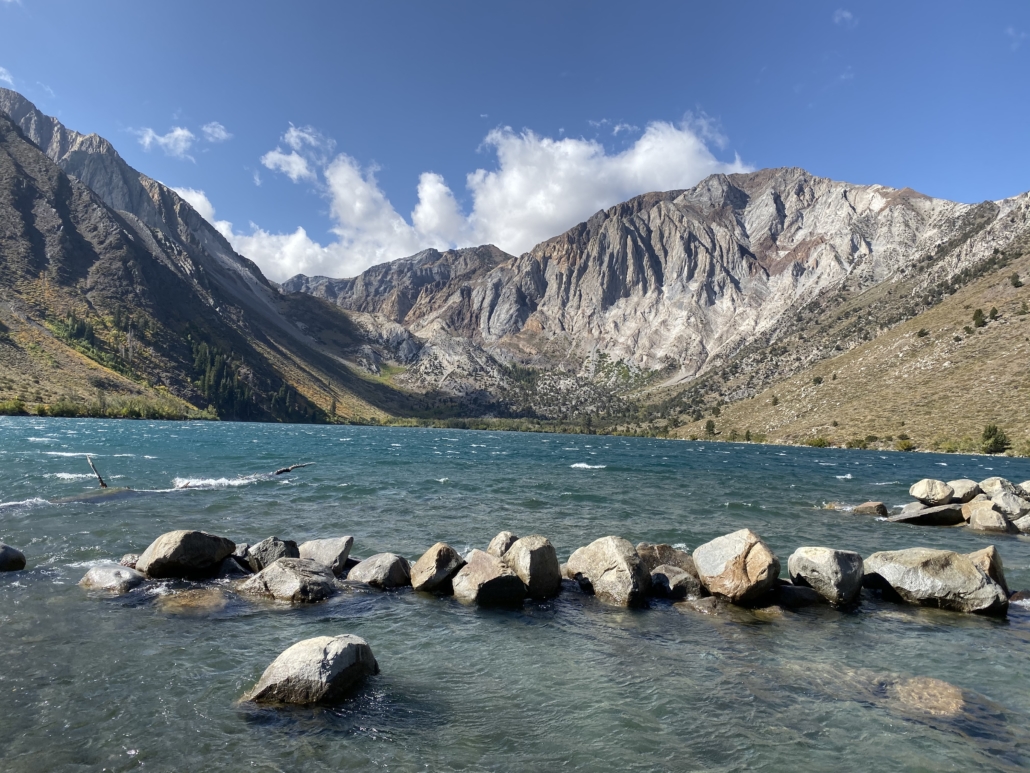 If the weather’s good, you’re bound to see a few anglers around the lake’s edge, trying their luck. Convict Lake is so popular for fishing that it’s stocked every week with brook trout by the California Department of Fish and Wildlife.