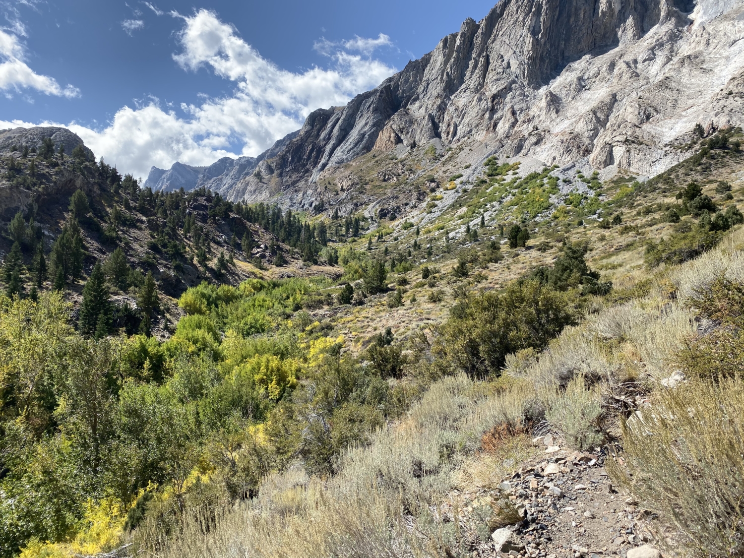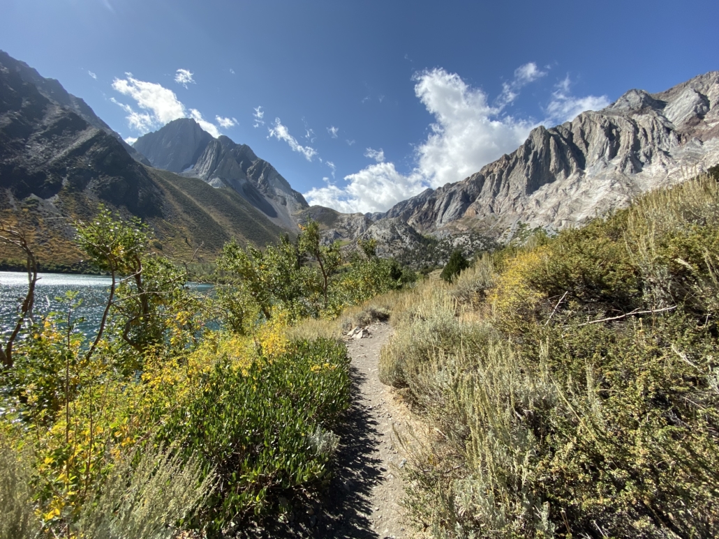 I would be remiss if I didn’t start by saying that trying to describe the immense beauty of Convict Canyon and Mildred Lake is a futile effort, at best. It’s like trying to describe the color blue to someone who’s never seen it before. But, dear readers, I will try my best to create a tantalizing reproduction of the trek up to these two gems, because they are not to be missed. This is easily one of the prettiest trails in the entire Sierra Nevada, tucked away behind the famous Convict Lake. Go in September or October, if you can, when the creek crossing is easy and the fall colors put on a spectacular show.