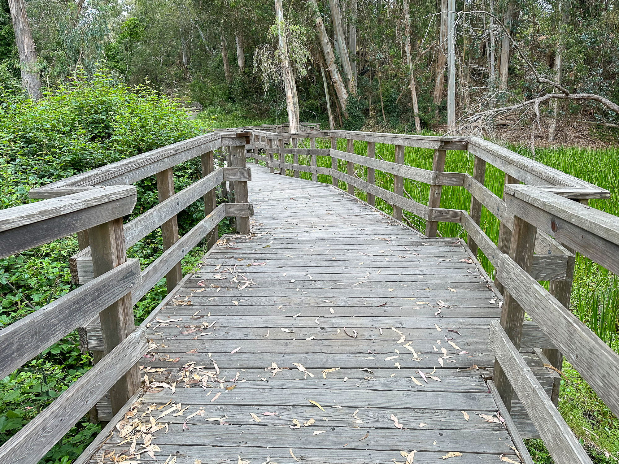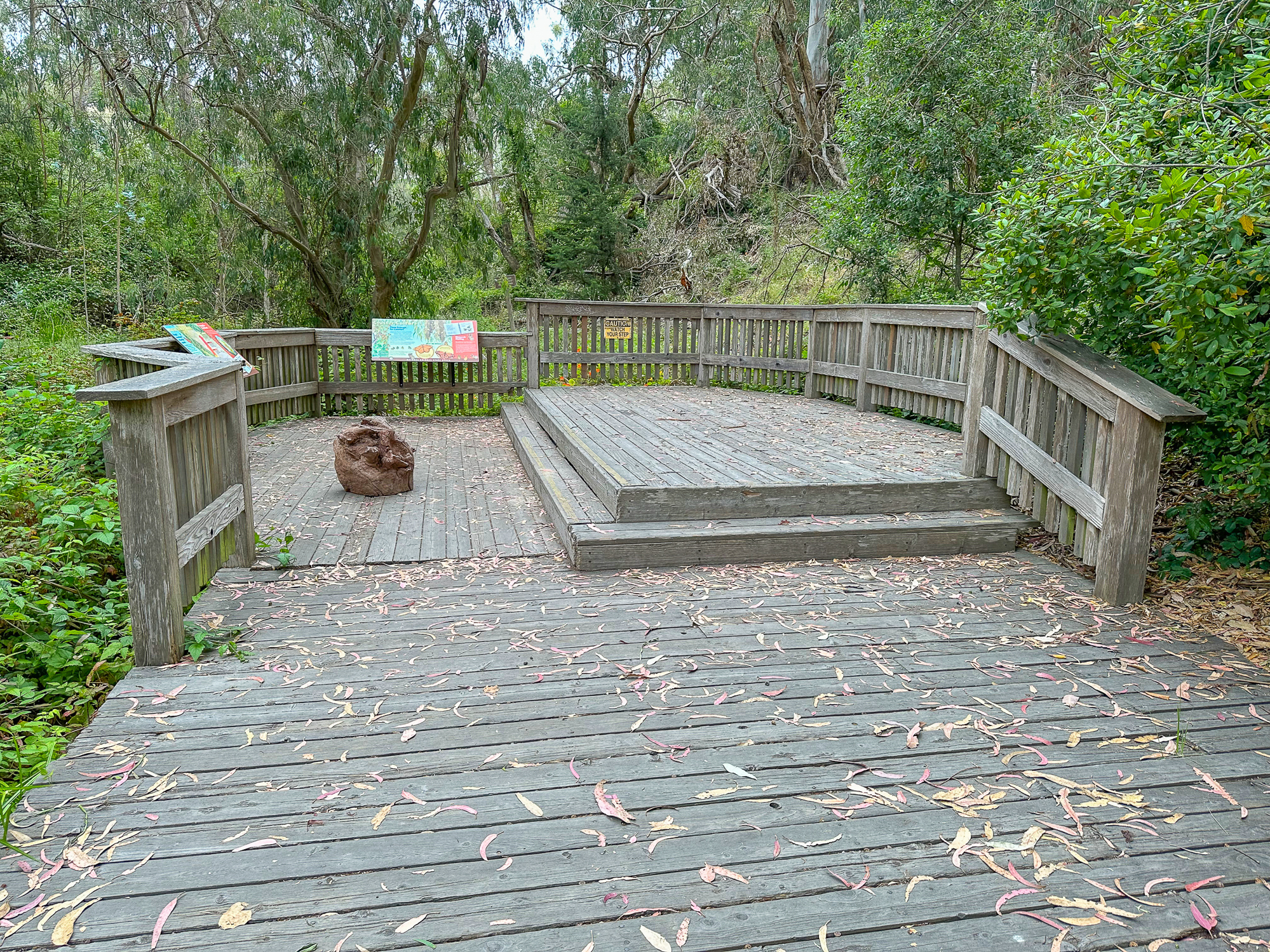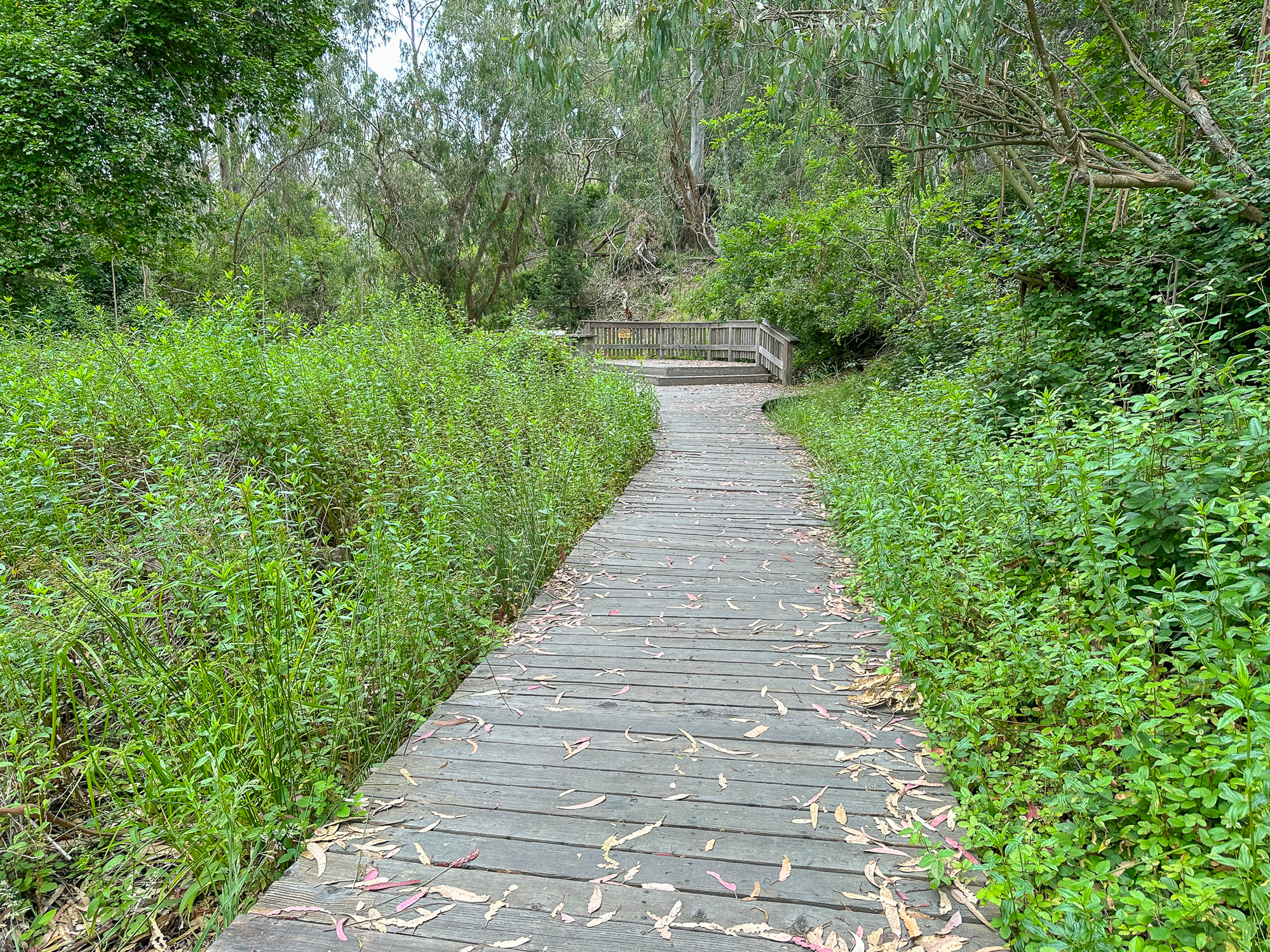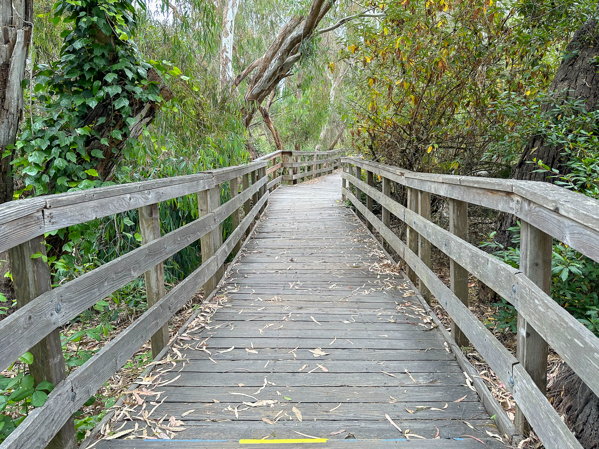 While this hike begins at the Monarch Preserve, it’s easy to switch it up and start with tide pooling if the timing works out more favorably. Beginning at the Natural Bridges Visitor Center, cross to the Monarch Butterfly Preserve sign and 5-foot wide accessible boardwalk under dense eucalyptus and patches of poison oak. Descend the stroller-friendly boardwalk, weathered and smooth, dotted with interpretive signs about the butterflies, plants, and wildlife.