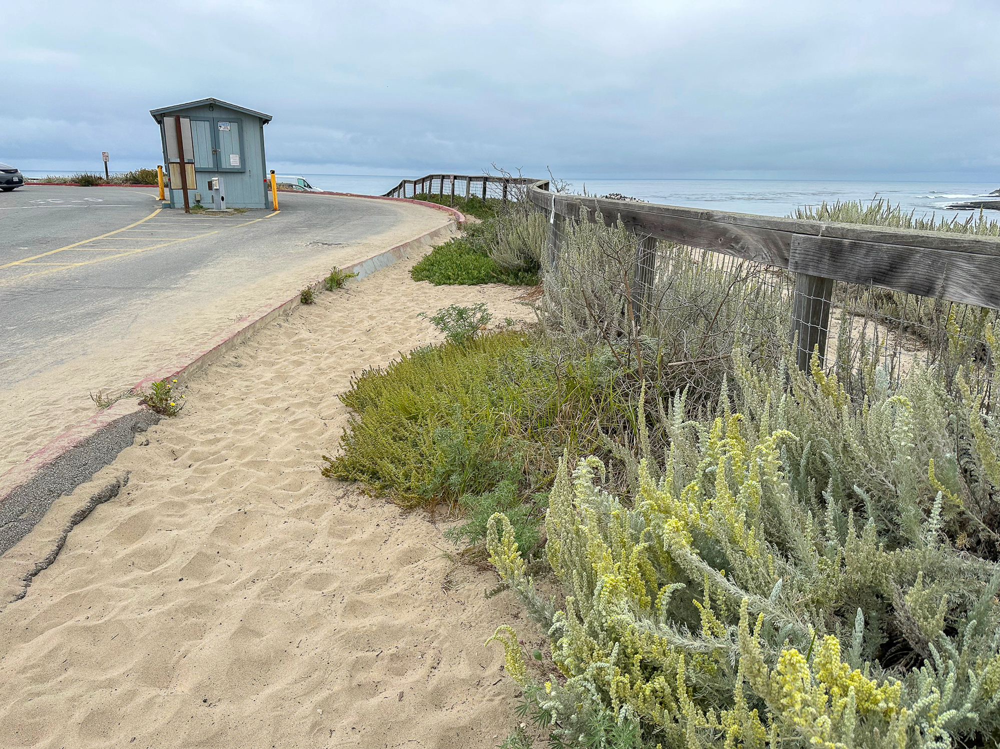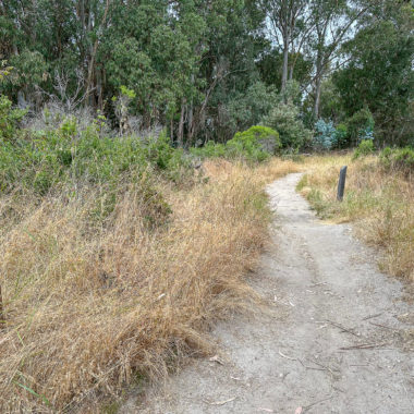 Pass the visitor center and continue south to the beach. Once you’re on the sand, you could just go to the water’s edge. But for a nice vista of the beach, bay, and park, bear left and make your way up to the park entrance kiosk. Then, continue straight to the 20-minute parking lot.
