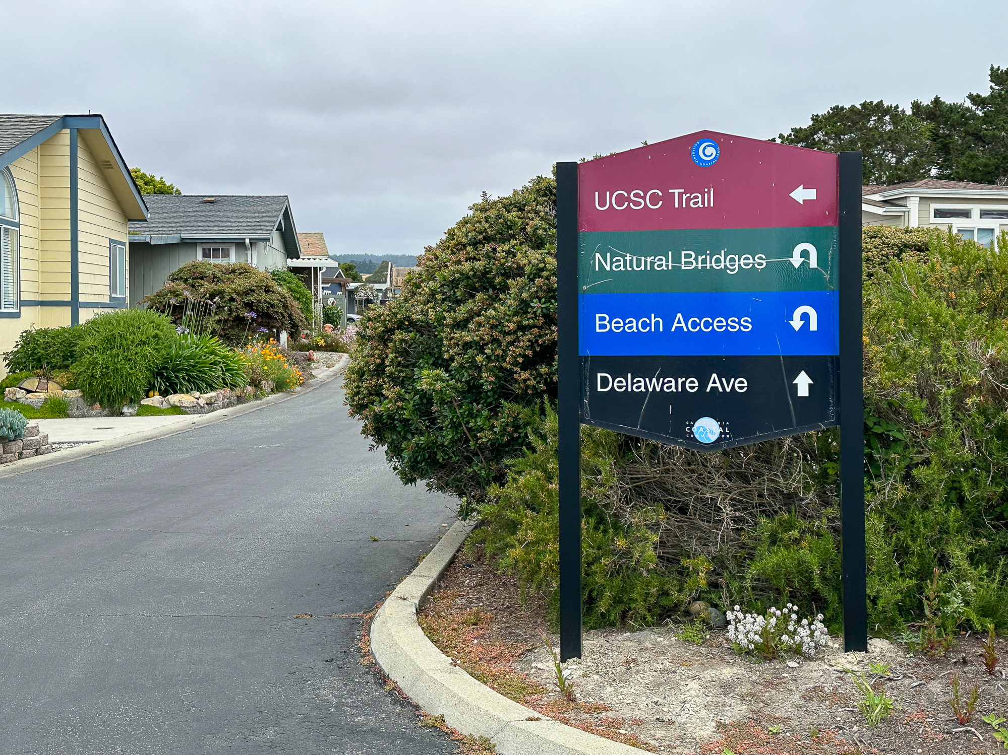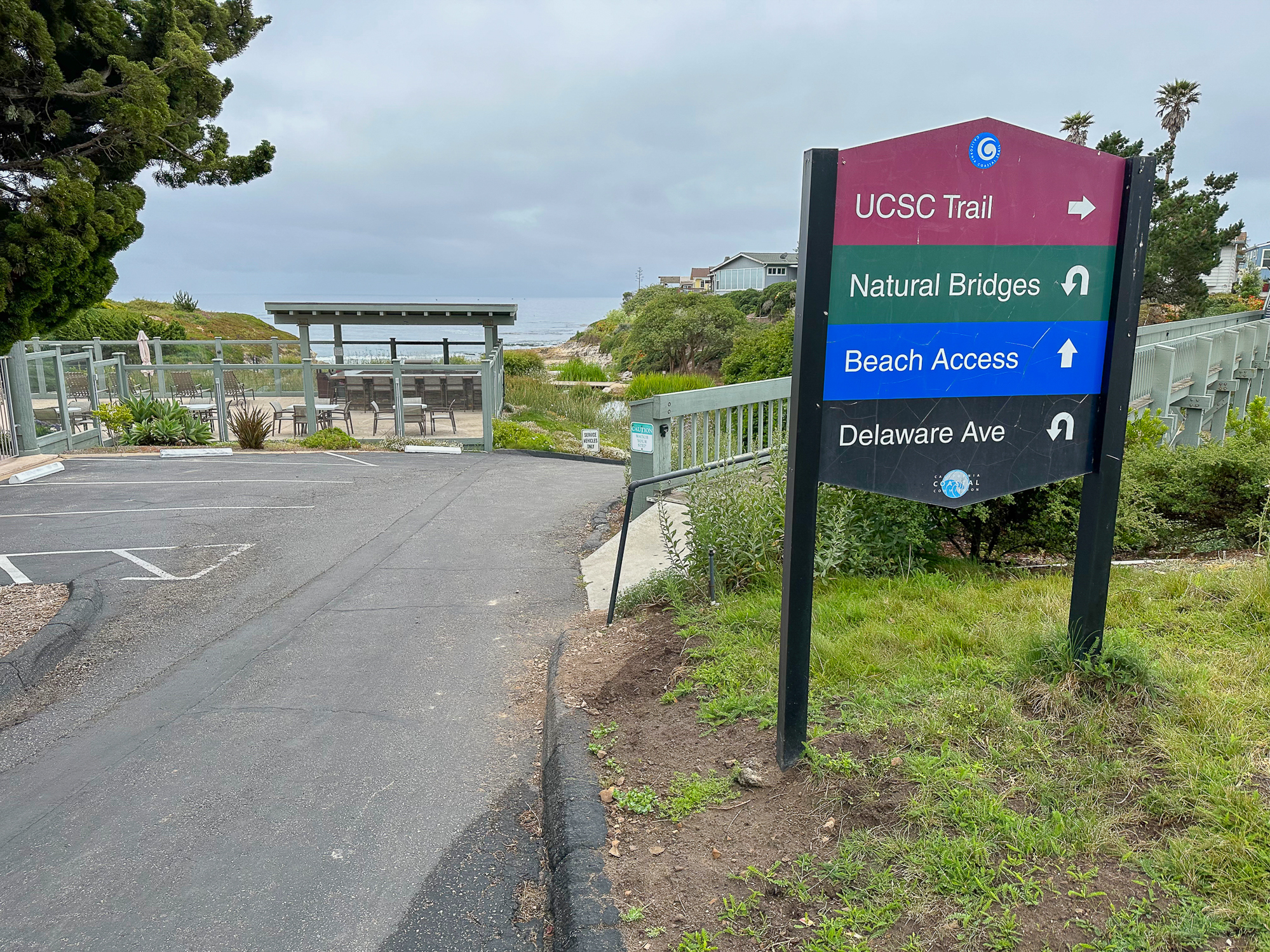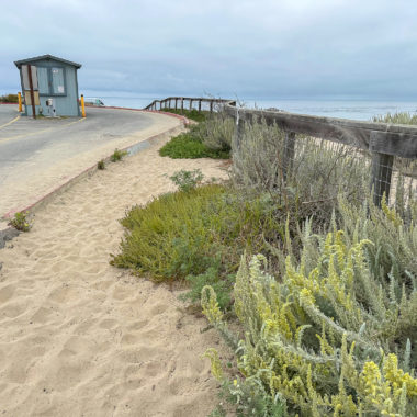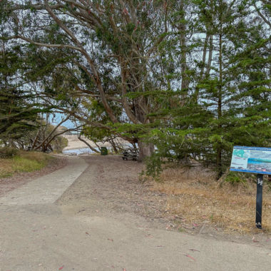 Arrive at the De Anza community gate and pass through it onto Krister Place. At the end of the road, turn right on Cascade Drive and follow the blue Beach Access signs. Just past the community pool, turn left and continue following the blue Beach Access signs down a paved driveway to the beach.
