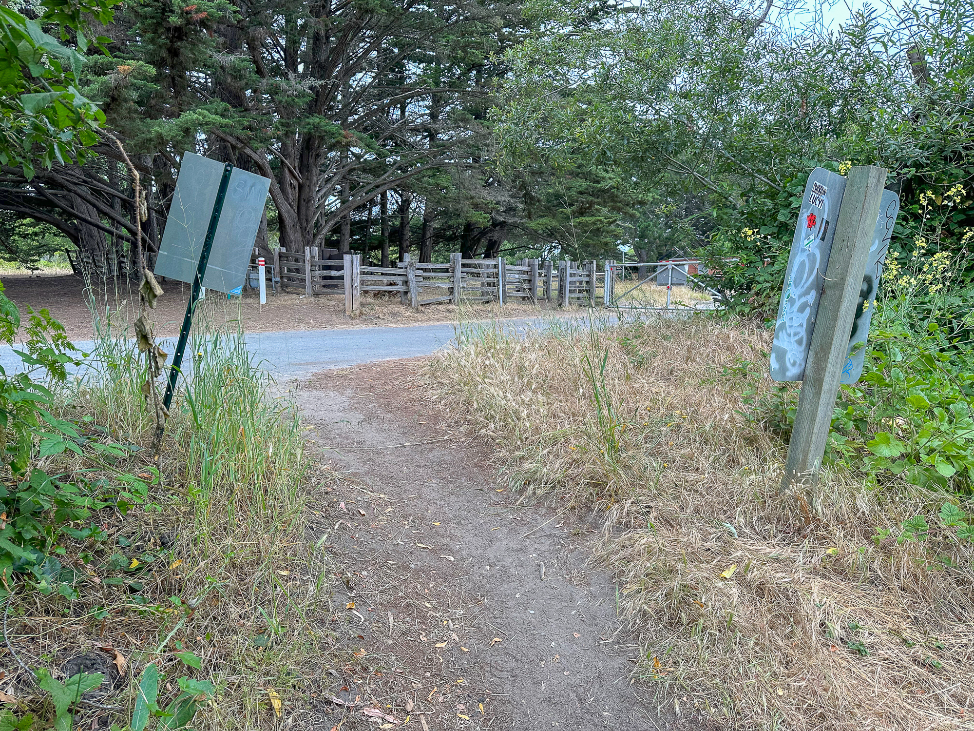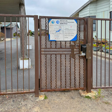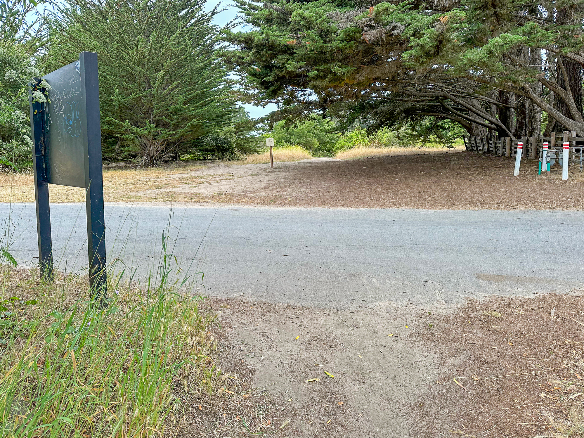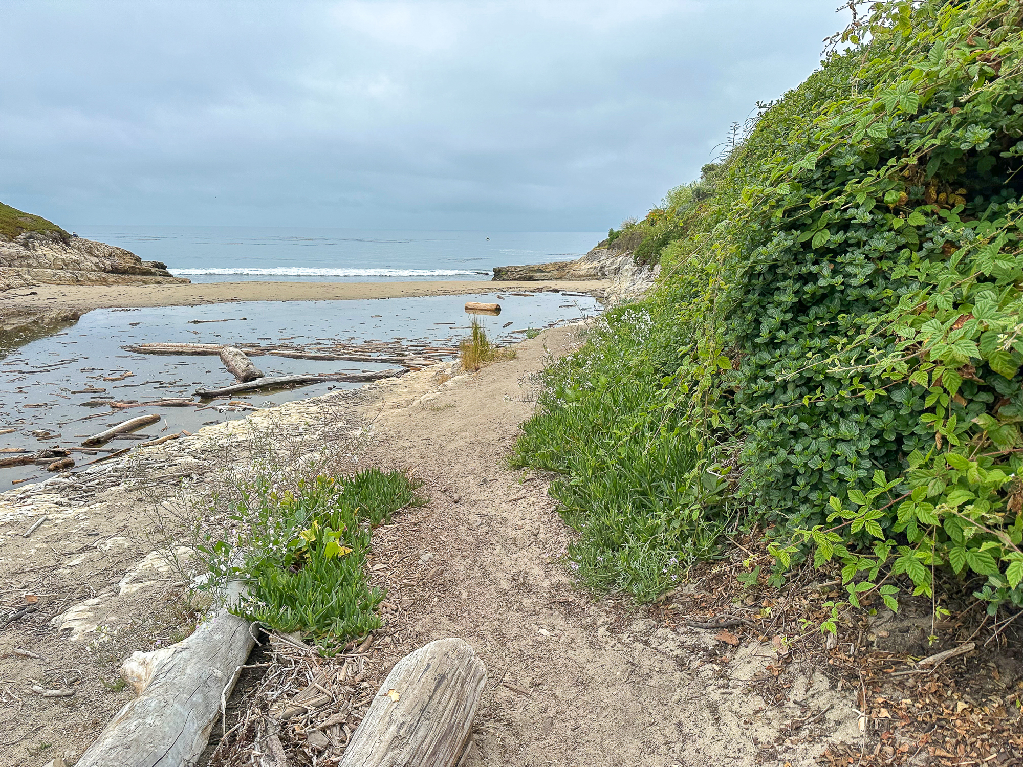 Arrive at the De Anza community gate and pass through it onto Krister Place. At the end of the road, turn right on Cascade Drive and follow the blue Beach Access signs. Just past the community pool, turn left and continue following the blue Beach Access signs down a paved driveway to the beach.