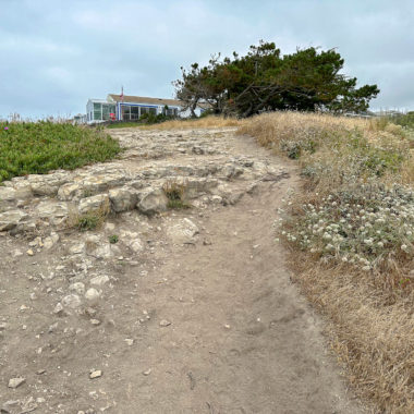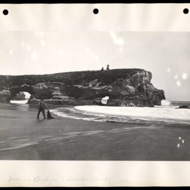 When ready, retrace your steps and descend the sandy slope to the beach. The middle arch is clearly visible at the water’s edge. More historic photographs from the University of California, Santa Cruz, show what the original arches looked like from the beach. These photographs were taken between the late 1800’s and early 1900’s.