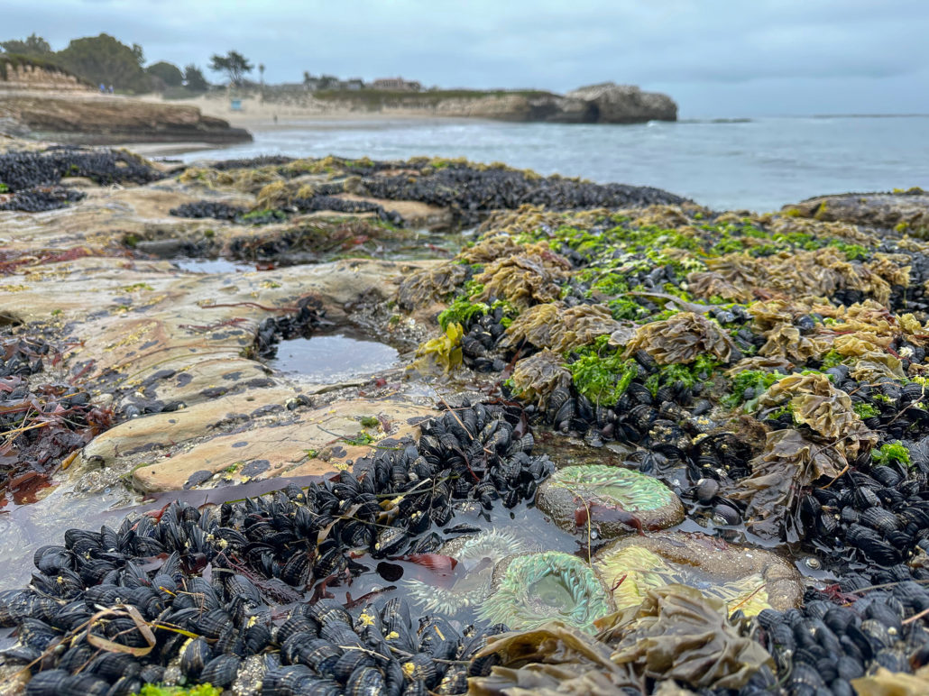 Anemones on the rocky shelf beside Natural Bridges State Beach