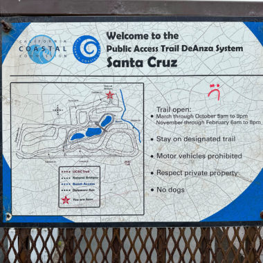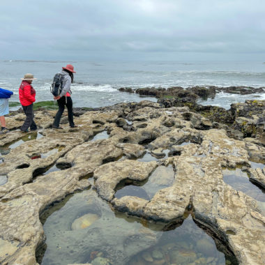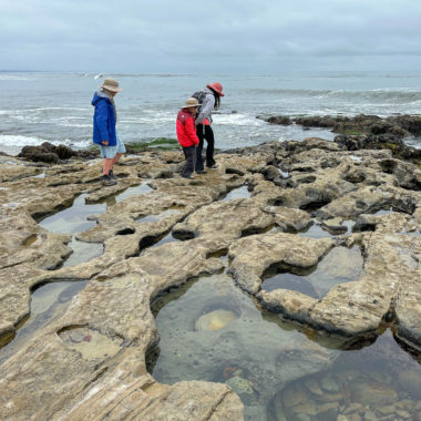 This hike visits tide pools that are accessed through public trails in the De Anza Santa Cruz mobile home community. The gated entrances to the community are open from 5:00 a.m. – 9:00 March through October and 6:00 a.m. to 8:00 p.m. November through February.