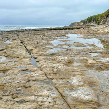 Sandy channels break up the wide rock shelves. If you do decide to cross these channels, keep your eye on the tide to prevent getting stranded. When ready, retrace your steps back to the Natural Bridges Visitor Center.