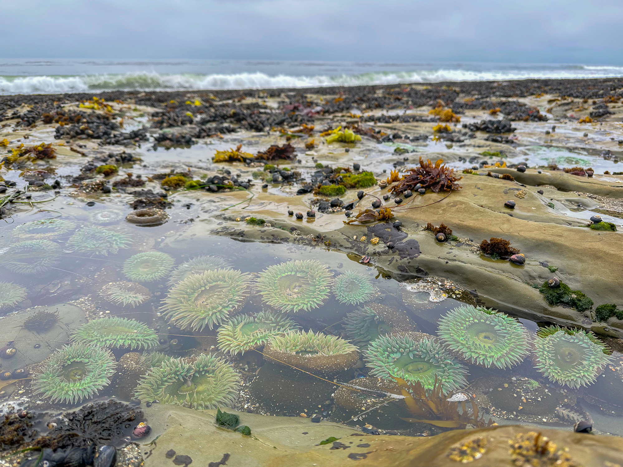 A group of anemones in a tide pool near the De Anza mobile home community