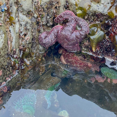 At certain times of the year, there is an extra strong gravitational pull from the alignment of the sun, moon, and earth in a particular way, resulting in uncharacteristically high and low tides, like King Tides. King Tides can go quite high and quite low to nearly -2.0 feet. While generally, any negative tide is good for tide pooling, these extremely low tides are GREAT for seeing creatures usually covered by water. You could plan your tide pool visit by googling the dates of the King Tides and then looking up the low tide on those dates.