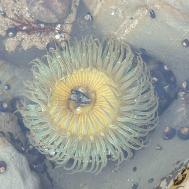 The Monarchs’ arrival in fall and winter coincides with a favorable time of year to go tide pooling, when low tides occur in the afternoon and early evening. Tide pooling is looking into the pools of water left behind in rocky shorelines when the tide goes out, and spotting creatures like snails, crabs, sea stars, and anemones.