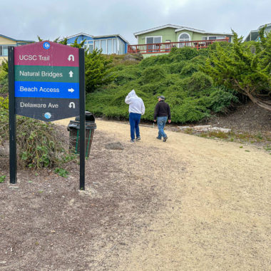 Lengthen your hike with an oceanside walk along West Cliff Drive. The dedicated sidewalk weaves east along the Santa Cruz shoreline past benches and overlooks. From Natural Bridges, it’s a 2.0-mile walk one way to Lighthouse Beach and a 3.0-mile walk one way to the Santa Cruz Wharf.