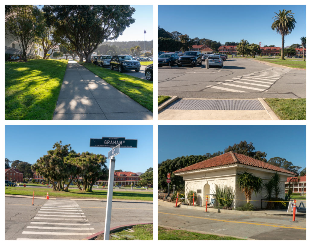 When ready, head southwest for 0.1 miles on Graham Street, crossing Sheridan Avenue and passing Pershing Square on your right. Cross Moraga Avenue and turn left to return to the Presidio Officers’ Club, finishing your 2.8-mile loop.