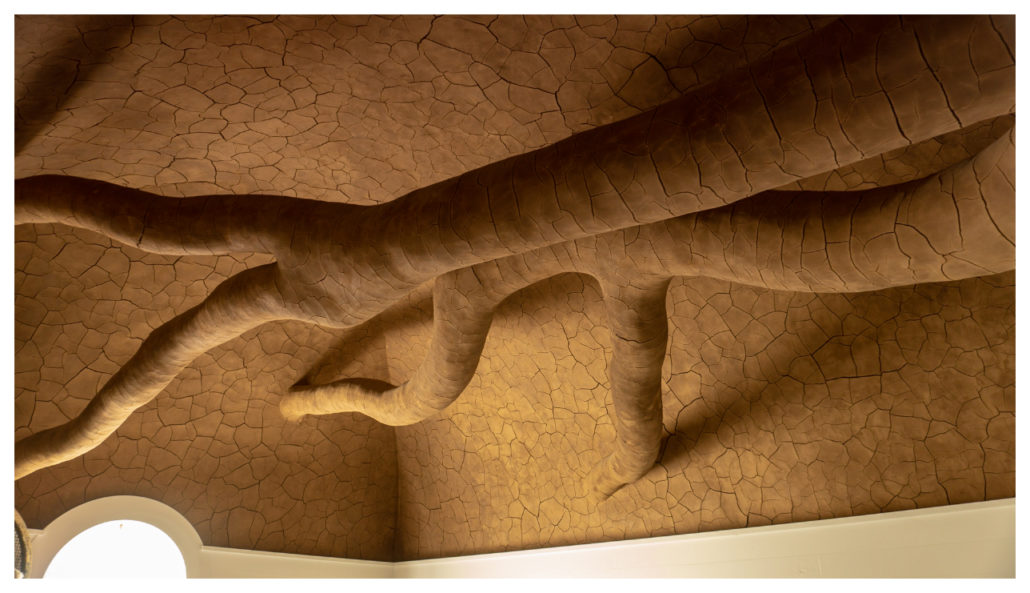At the 2.7-mile mark, step into the former powder magazine with four-foot thick stone walls and a domed roof. Inside is a large eucalyptus branch, recycled from the New Presidio Parklands Project, suspended from the roof and covered in clay from the Presidio. Tree Fall is Goldsworthy’s third sculpture in the Presidio, created in 2013. Like Wood Line, Spire, and Earth Wall, this sculpture speaks to the relationship between nature and the modern world built around it. It is Goldsworthy’s first indoor sculpture.