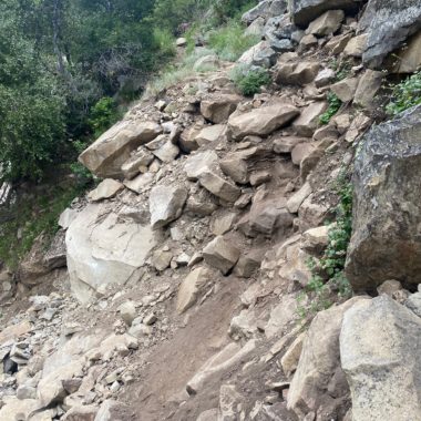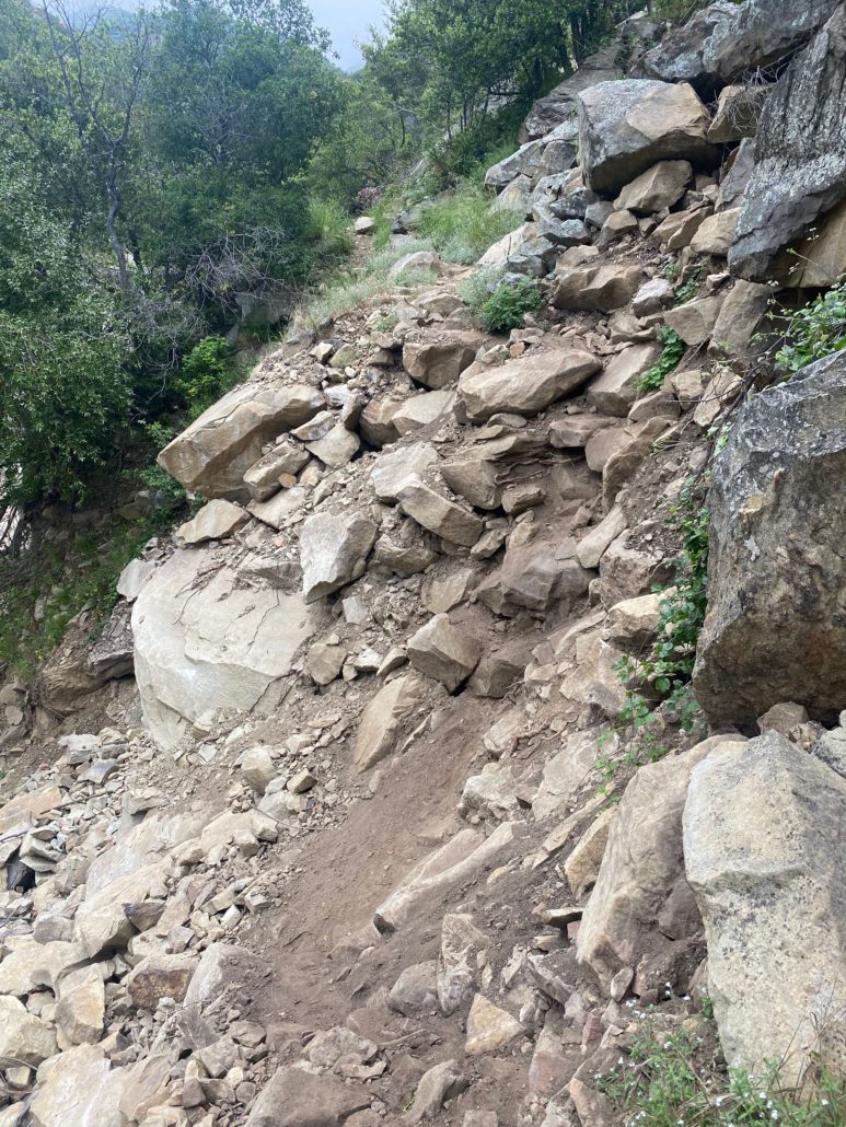 Unfortunately, just as I came to the biggest creek crossing before reaching the famous waterfall, I was at a junction I couldn’t cross. It looked like a small rockslide had blocked the trail. If you’re a competent rock climber you could get across, but I was alone and didn’t want to take the risk. One slip of my foot on the loose dirt confirmed to me that this was not what I should be doing. It was disappointing to have come to close to the end of the hike and the stunning view (I was less than half a mile from the waterfall), but I had to prioritize my safety and chose to go back.
