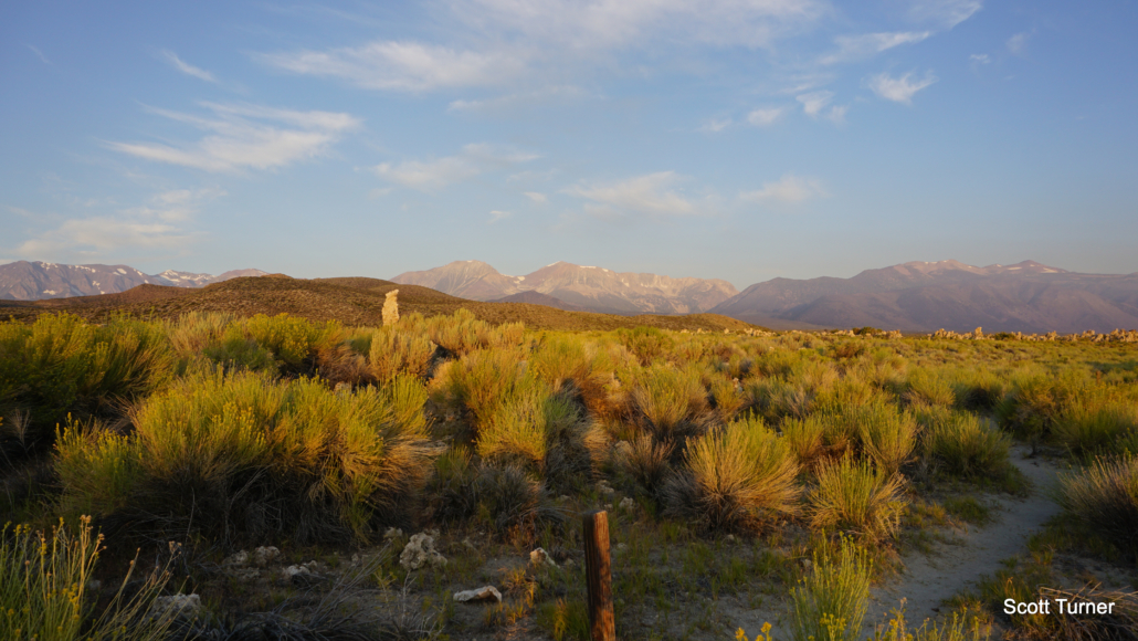 The Mono Lake Committee had formed a few years prior, and the Committee joined forces with the Audobon Society to take legal action against the L.A. D.W.P.. After a decade of litigation, the California State Water Resources Board ordered protection for Mono Lake and its tributary streams in an effort to allow run-off from the Sierra to replenish the lake. The board set a goal for a new lake level of 6,392 feet, although ongoing drought, heat, and evaporation currently hinder the effort to reach that target. As of August 2019 following a heavy snowpack year in the Sierra, the lake’s surface level stood at 6,383 feet – 9 feet below the target level.