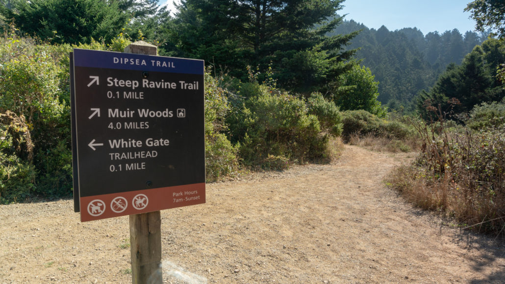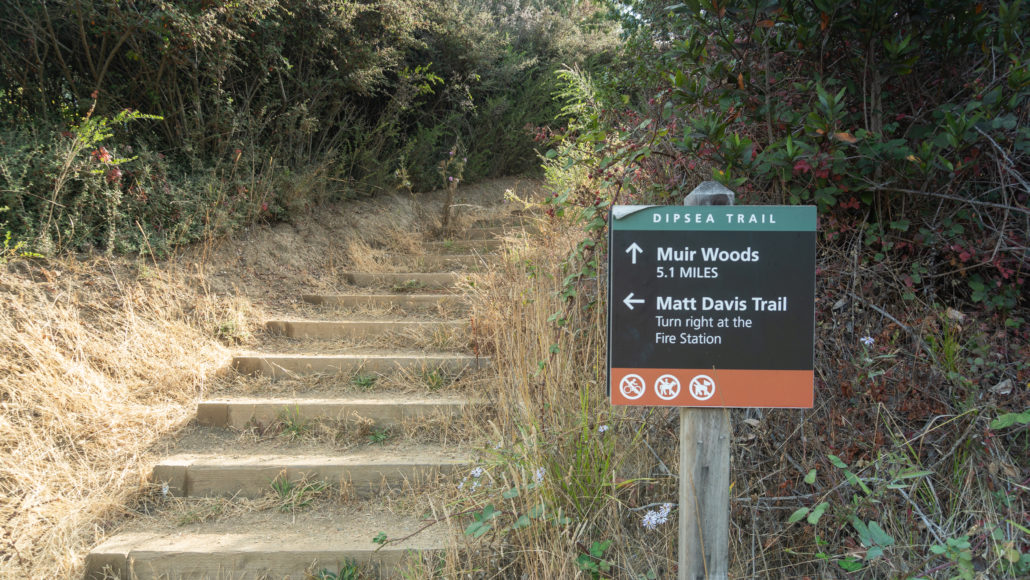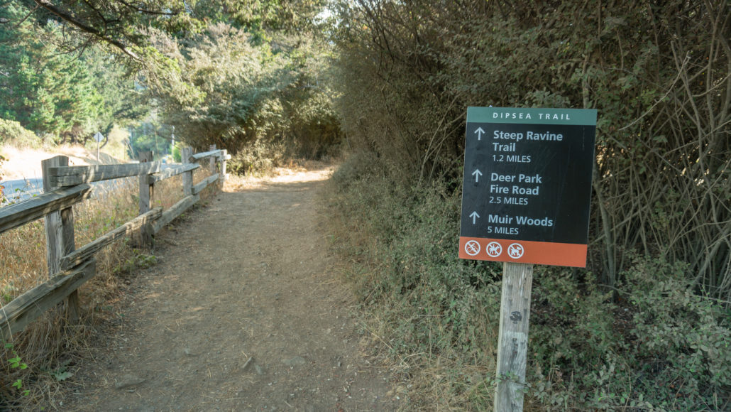 - If you’re looking to start earlier than 9:00 a.m., park on the dirt shoulder northeast of the intersection of Highway 1 and Panoramic Highway. You can pick up the Dipsea Trail across the road to the southeast.