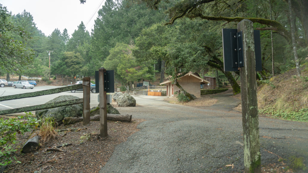 At the 3.2-mile mark, emerge at the Pantoll ranger station and parking lot. Pantoll has picnic tables, restrooms, a water fountain, and a campground. It is a good spot for a quick break. At the ranger station, you can pick up a free Mount Tam brochure that includes a trail map.