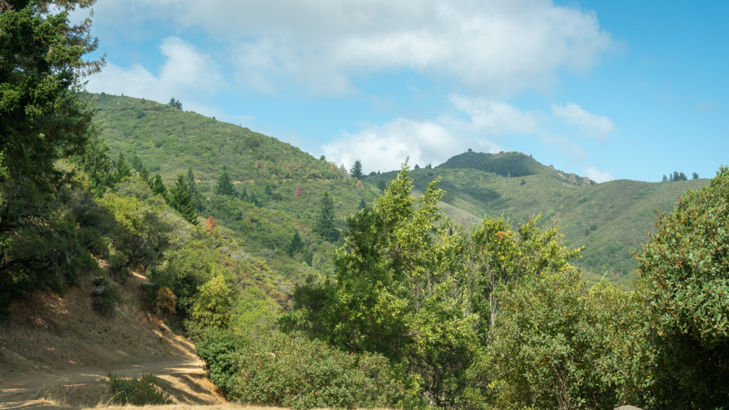 At the 3.7-mile mark, just over halfway to the lookout, pass a gate and boundary for the Marin Municipal Water District.