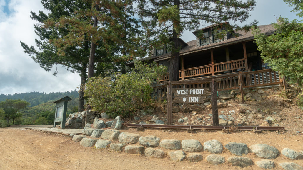 Built in 1904, West Point Inn was originally a transfer stop. Railroad passengers arrived on the Mill Valley & Mount Tamalpais Scenic Railway, which operated from 1896-1929, and then took a horse-drawn stagecoach to Stinson Beach, then known as Willow Camp. The name “West Point” refers to the Inn being the westernmost point on the railroad’s route. Notice how the wide dirt road encircles West Point Inn: this is Old Railroad Grade, the path of the railroad as it came up from Mill Valley to the east, wrapped around the Inn, and continued northeast to East Peak.