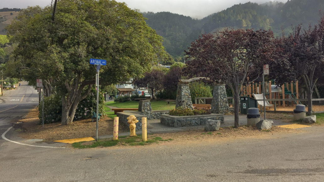 The Stinson Beach Fire Station is at the end of the road on the corner of Belvedere Avenue and Highway 1. Turn left and carefully cross Highway 1 to return to Arenal Avenue. Retrace your steps back to the beach, heading west on Arenal Avenue towards the Parkside Snack Bar and Stinson Beach.