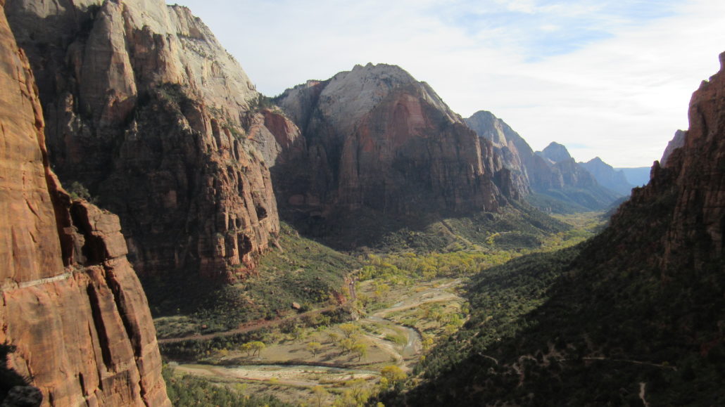 The ridge narrows and the descent quickens until the trail briefly bottoms out at Scout Lookout, which is also the beginning of the Angels Landing Trail. You can tack on Angels Landing if you have time and energy, adding 0.9 mile and 750 feet of climbing. If you do plan on adding Angels Landing, make sure you save enough time to reach the end of the trail before the day’s last shuttle leaves. Otherwise, you will find yourself stranded within Zion Canyon with a really long walk back to the visitor center.