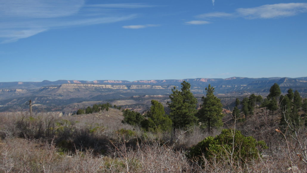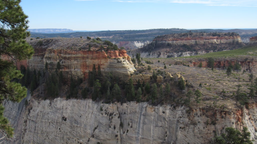 After the spur, continue on an often-level, but occasionally downhill stroll toward Potato Hollow Spring. This is the easiest walking on the route, and you can set to cruise control and make great time through the sparse forest of ponderosa pine. At around 3 miles, the West Rim Trail sidles up to the headwaters of North Creek, at which point you can earn a teaser of the fantastic view that awaits beyond the Telephone Canyon Junction. If you’re a leisurely hiker, this handful of viewpoints is a nice place to cool your heels, but the views here will seem quaint once you pass the Telephone Canyon Trail junction.
