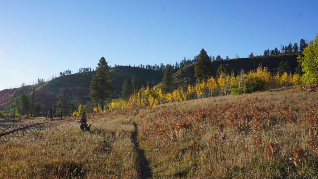 At 4.1 miles, the West Rim Trail begins a descent into Potato Hollow. After skirting the edge of a grassy meadow, the trail arrives at a grove of quaking aspens that shade a junction sign indicating Potato Hollow Spring and campsite 8 at 5.2 miles (don’t listen to the park’s official distance suggesting that Potato Hollow is 4 miles from Lava Point. It’s wrong). A second junction from campsite 7 lies ahead at 5.4 miles. Potato Hollow Spring is seasonal, so be sure to check at the visitor center first to determine whether there is water flowing. If you are camped nearby, you won’t have any access to water elsewhere if the spring is dry, so be prepared to schlep all of the water you’ll need if that’s the case. Beyond Potato Hollow, the trail begins the first of two significant climbs on the route as it climbs over a ridge and then down to the headwaters of Sleepy Hollow. Another short burst of climbing will bring you up to the Telephone Canyon junction at 6.7 miles.