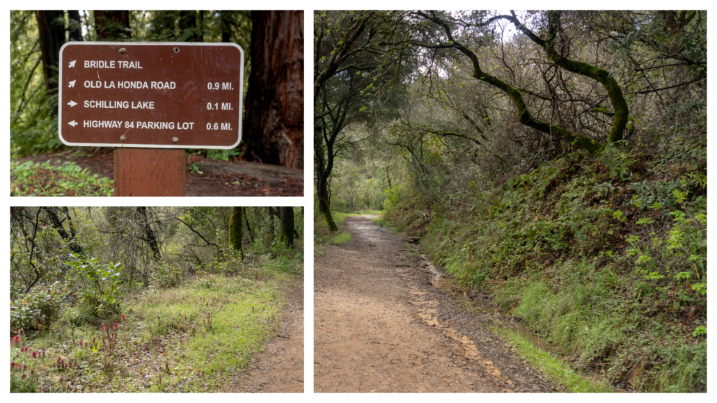Reach your turn-around point at Old La Honda Road and the alternate trailhead. You can see there is a wide dirt area that a few cars can squeeze into, as well as parking signs. Next to the road is a sign for Dennis Martin Creek, too. Now it is time to climb back up! Retrace your steps west on Bridle Trail and then north on the Schilling Lake Trail towards the Highway 84 parking lot at 3.0 miles. Look carefully along the trail as you hike back. I bet you’ll spot more plants and flowers in addition to the ones you saw on your way in. I sure did 🙂