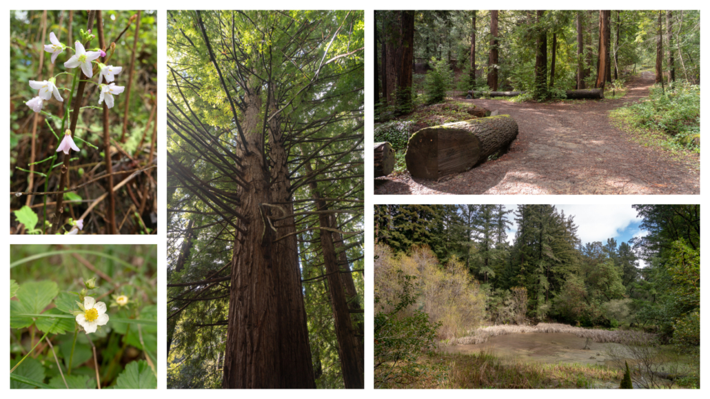 Thornewood Preserve, quietly tucked between I-280 and Skyline Boulevard in Woodside, packs an historic and botanical wallop in its itty-bitty 1.5-mile trail system. This hike visits all 1.5 miles in the preserve, including Schilling Lake, Dennis Martin Creek, and a second-growth redwood forest. It is a great option for a morning or afternoon walk to clear your head and to see beautiful wildflowers in winter and spring.