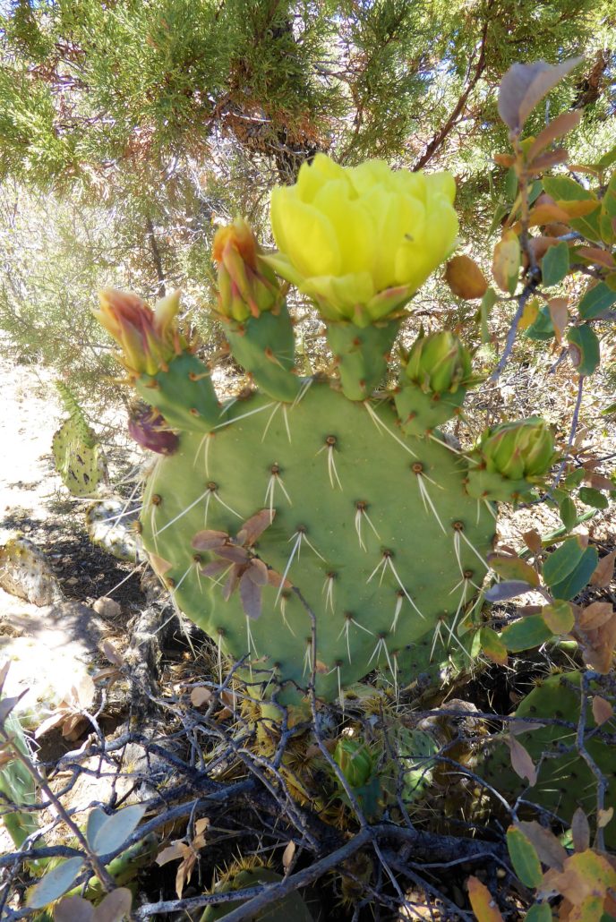 At this higher elevation the trail exposes the desert landscape with lots of prickly pears growing along the sides of the trail. In the early summer months, they show off with vibrant yellow flowers — but at all times make sure you keep a safe distance!