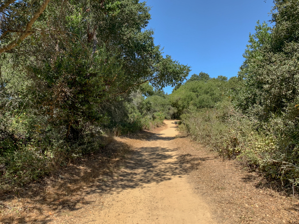 The West Ridge Trail is a multi-use fire road that is mostly sunny, with many shady patches too.