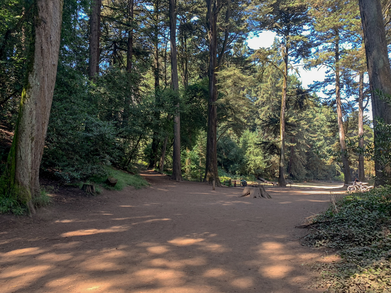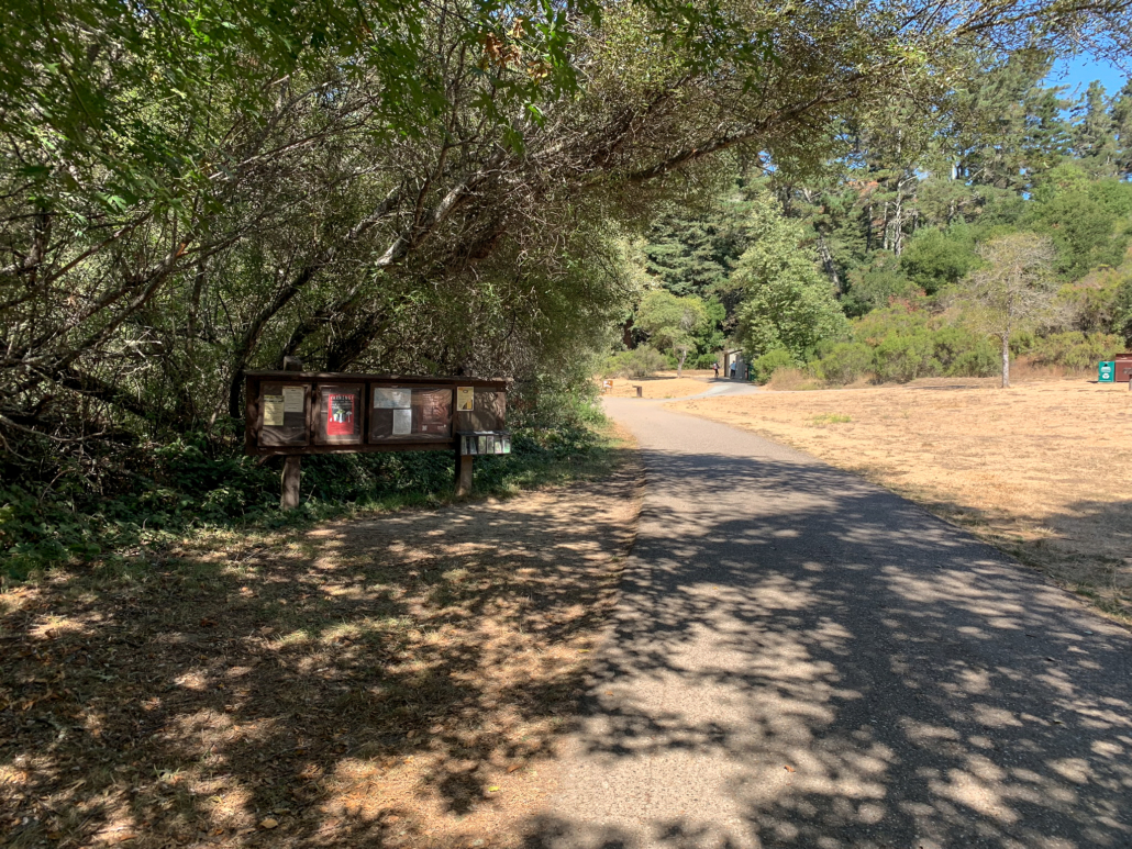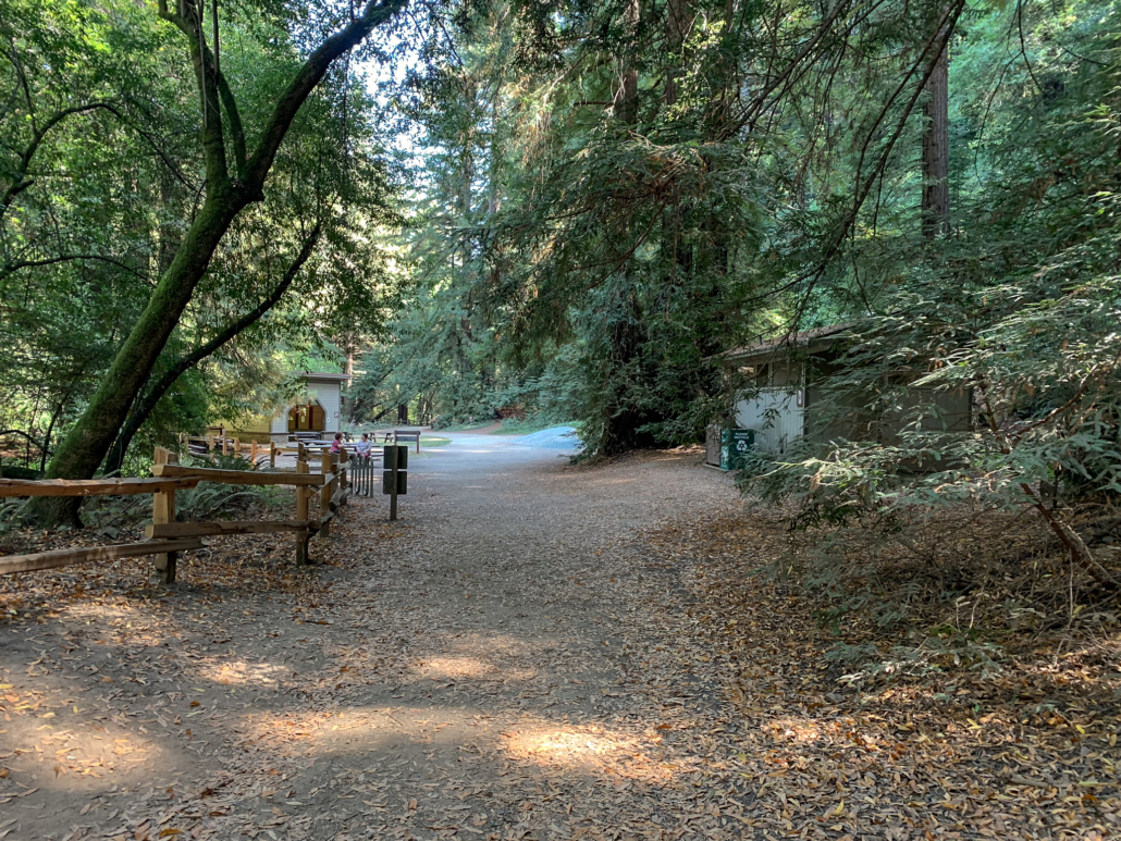 Reach the Trail’s End picnic area 6.9 miles, staying straight on the Stream Trail. Trail’s End is one of three group campsites in Redwood Regional Park; the other two are Girl’s Camp and Fern Dell. All three have a shelter, fire circle, water spigot, picnic tables, and restrooms at the camp or nearby. The paved portion of the Stream Trail begins here, heading east towards the Canyon Meadow parking lot. This paved portion is a really nice option for families or those with limited mobility, passing through pretty redwoods on a mostly flat, easy-going slope.