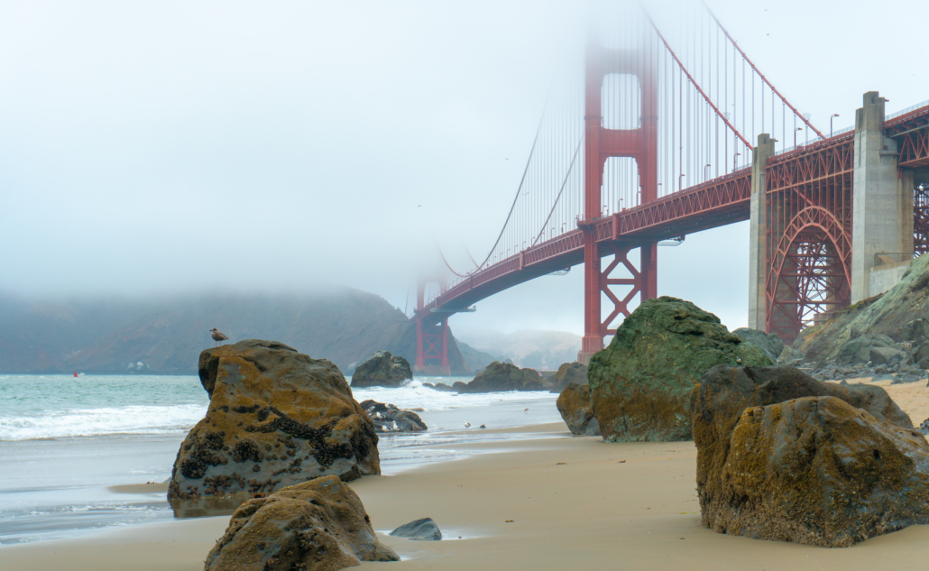 Impressive views of the Golden Gate Bridge from Marshall’s Beach