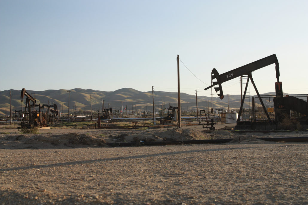 Just east of the Temblors, there are slightly more people around – but still not enough to call it ‘crowded.’ Instead of dry lakes and roaming pronghorn, it’s oil and gas infrastructure here – rusting derricks as perpetual motion machines and gleaming silver pipes with the occasional streamline moderne loop to break up the monotony. In good rain years, wildflowers still cover the hills behind them. In 2017, a bloom on the plain was so enormous and bright it could be seen from space.