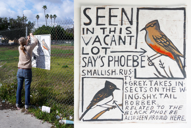 Elkpen’s neighborhood efforts also included small, text-heavy signs, a holdover from her map-making experience in New York, which spawned a “graphic love” of how letters look. The simple cardboard placards (you can find some of them here), a sort of subversion of the billboards plastered across what feels like every stationary surface in L.A., operated through the element of surprise and by eliciting wonder. A statement like, say, “Grizzly bears lived here” might shock – and delight – people who aren’t familiar with the natural history of this place. They also served as a sort of ongoing “textbook” for her community. “Learning something gives you agency, gives you control, gives you a sense of empowerment in your life,” she says.